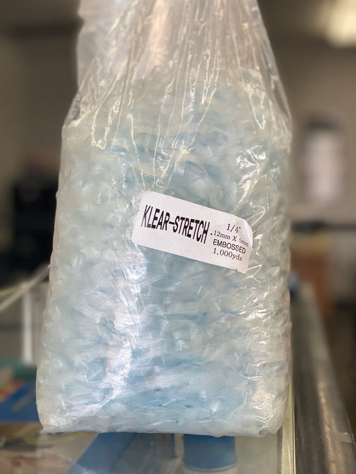QUANTITY: 1,000 yards per bag SIZE: 1/4" COLOR: Clear USE: Popular for garments including lingerie, swimwear, sweaters, etc. Has an elasticit...